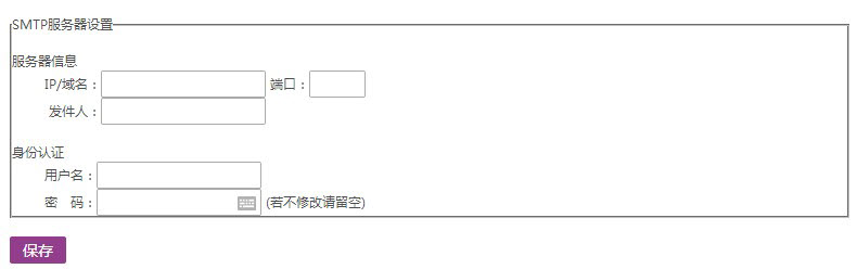 在服务器信息中输入IP/域名或端口、发件人;若需要身份认证则输入用户名和密码。 点击【保存】设置成功。