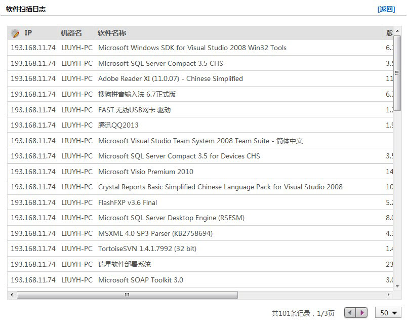 提示:在【软件名称】和【软件厂商】中不输入任何信息即默认查询全部软件扫描日志。