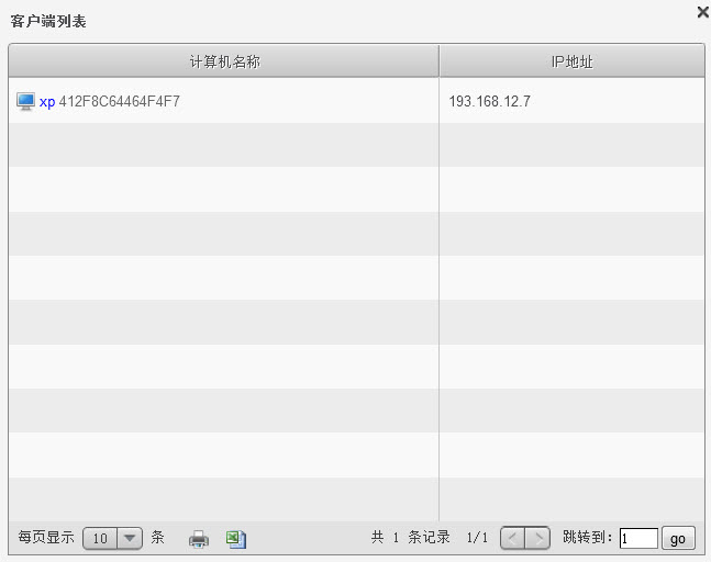 点击染毒客户端数量链接,弹出客户端列表信息,包括计算机名称和IP地址。