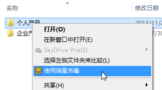 如需对某一文件或者某一个文件夹进行杀毒,您可以选中该文件或文件夹,点击鼠标右键,选择【使用瑞星杀毒】,此时瑞星杀毒软件将自动开始查杀。
