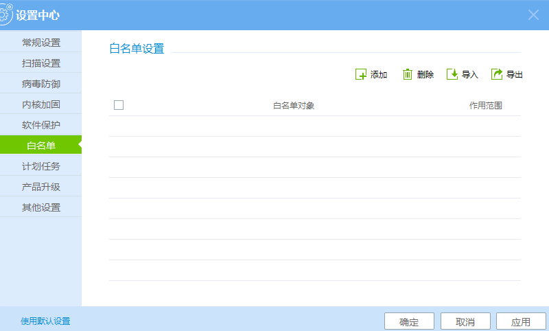 注意:加入到白名单的进程、文件和目录等在扫描和实时防护时将被自动跳过。