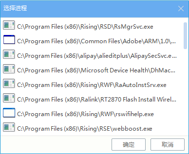 选择从进程添加后,会弹出【选择进程】窗口,您只需在列表中选择信任的进程,点击【确定】即可。
